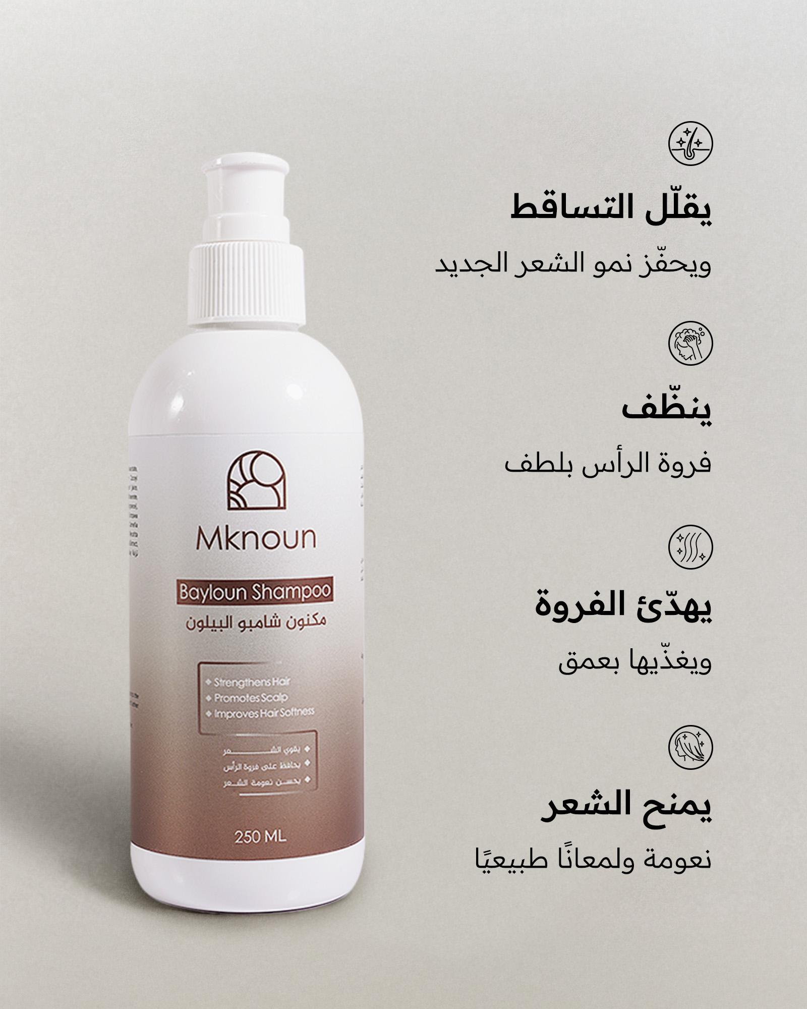 يبدأ الروتين بشامبو البيلون بترابة حلب الطبيعية والمستخلصات النباتية مثل أوراق الزيتون، الشاي الأخضر، البابونج، والبندق الساحر، ليعمل على تنظيف فروة الرأس بلطف، تهدئتها، تغذيتها، وتنشيط الدورة الدموية دون تجريد الشعر من زيوته الطبيعية، مما يساعد على تقليل التساقط وتعزيز نمو الشعر الصحي.