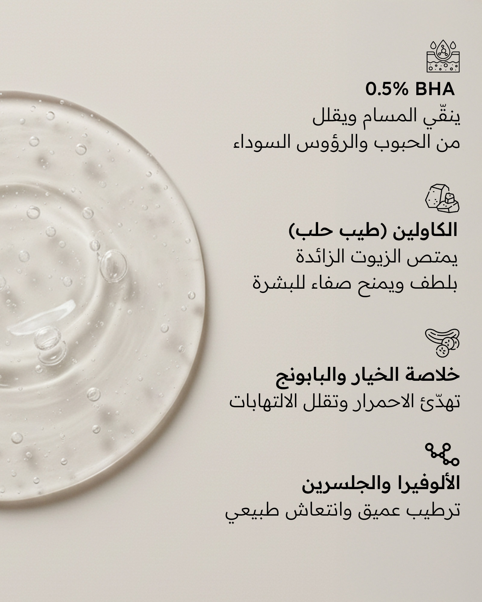 أما تونر بايلون من مكنون، فيحتوي على 0.5% BHA (حمض الساليسيليك) مع الترابة الحلبية، ليساعد على تنقية المسام من الداخل، تقليل الرؤوس السوداء، تنظيم الإفرازات الدهنية، وتصغير مظهر المسام. مدعّم بمزيج نباتي مهدئ من الخيار، البابونج، بندق الساحرة، زيت شجرة الشاي، وماء الورد لتهدئة الاحمرار ومنح البشرة إحساسًا فوريًا بالانتعاش والنقاء.