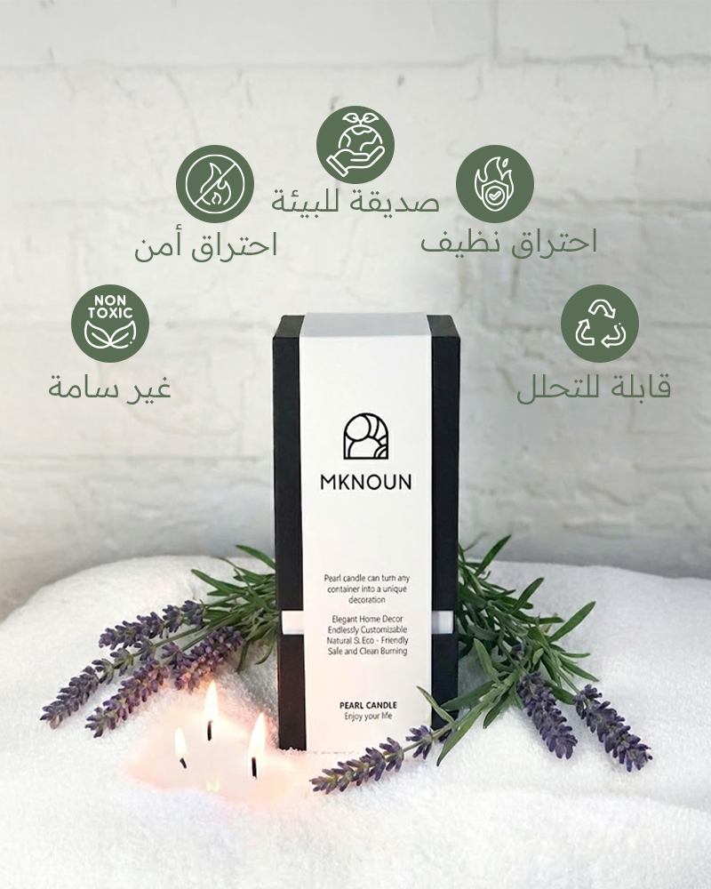 مع شمع اللؤلؤ المكنون استمتع بمزيج يجمع بين الأناقة والاستدامة. شموع نباتية 100% قابلة للتحلل، تمنحك إضاءة دافئة ولمسة عصرية، بدون أي مواد ضارة أو ملوِّثة.