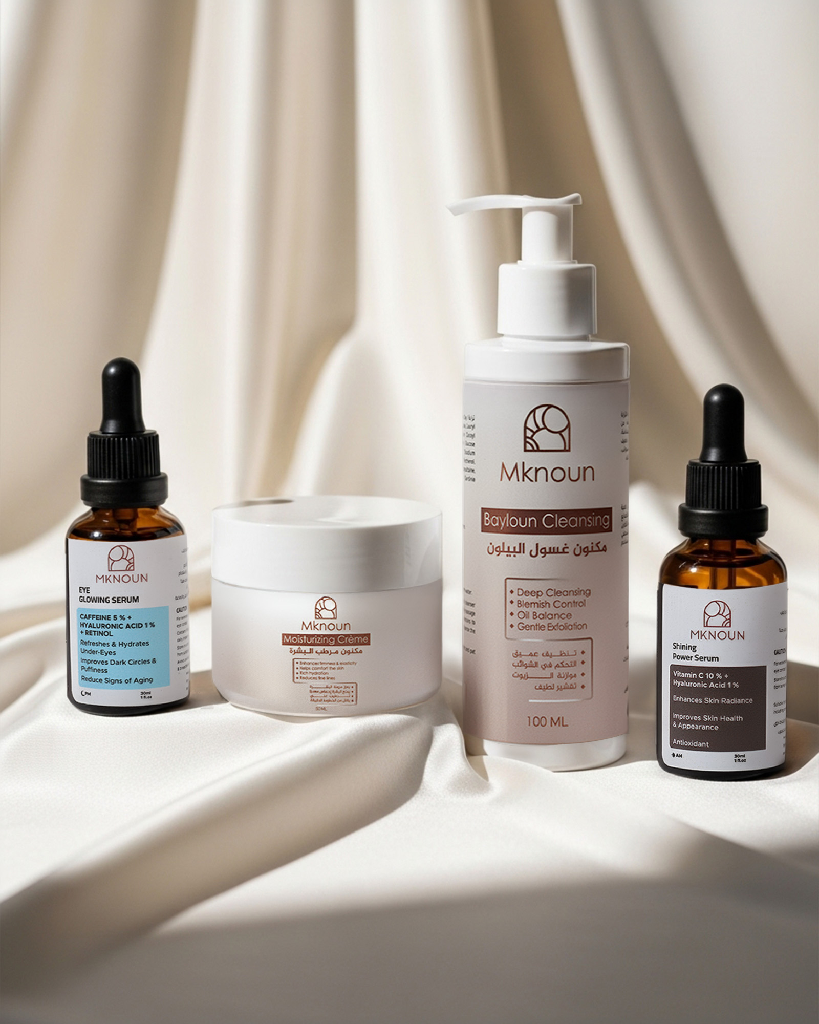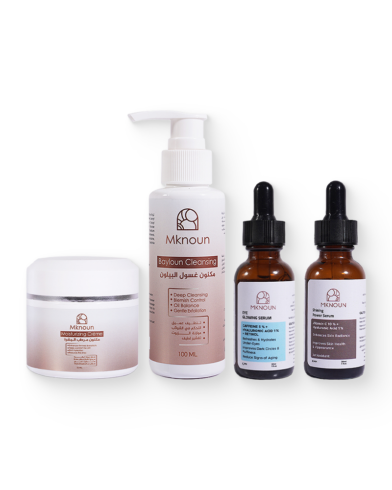 التي تضم غسول البيلون للوجه، الكريم المرطب، سيروم محيط العين بالكافيين، وسيروم فيتامين C بتركيز 10%.